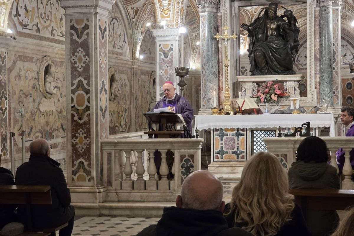 La Santa Messa, presieduta dall’arcivescovo metropolita Andrea Bellandi, si è svolta sabato sera nella cripta di San Matteo del Duomo di Salerno, luogo che custodisce le spoglie dell’apostolo ed evangelista. Un contesto particolarmente significativo, reso ancora più intenso dalla recente notizia della conclusione della fase diocesana dell’Inchiesta in vista della beatificazione e canonizzazione del sacerdote ambrosiano.