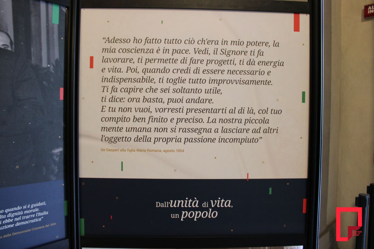 Il titolo stesso dell’esposizione – Servus inutilis – richiama l’idea evangelica del “servo inutile”: colui che compie il proprio dovere senza cercare riconoscimenti. È un’espressione che sintetizza bene lo stile personale di De Gasperi, noto per la sobrietà e per una concezione della politica intesa come responsabilità verso il Paese.